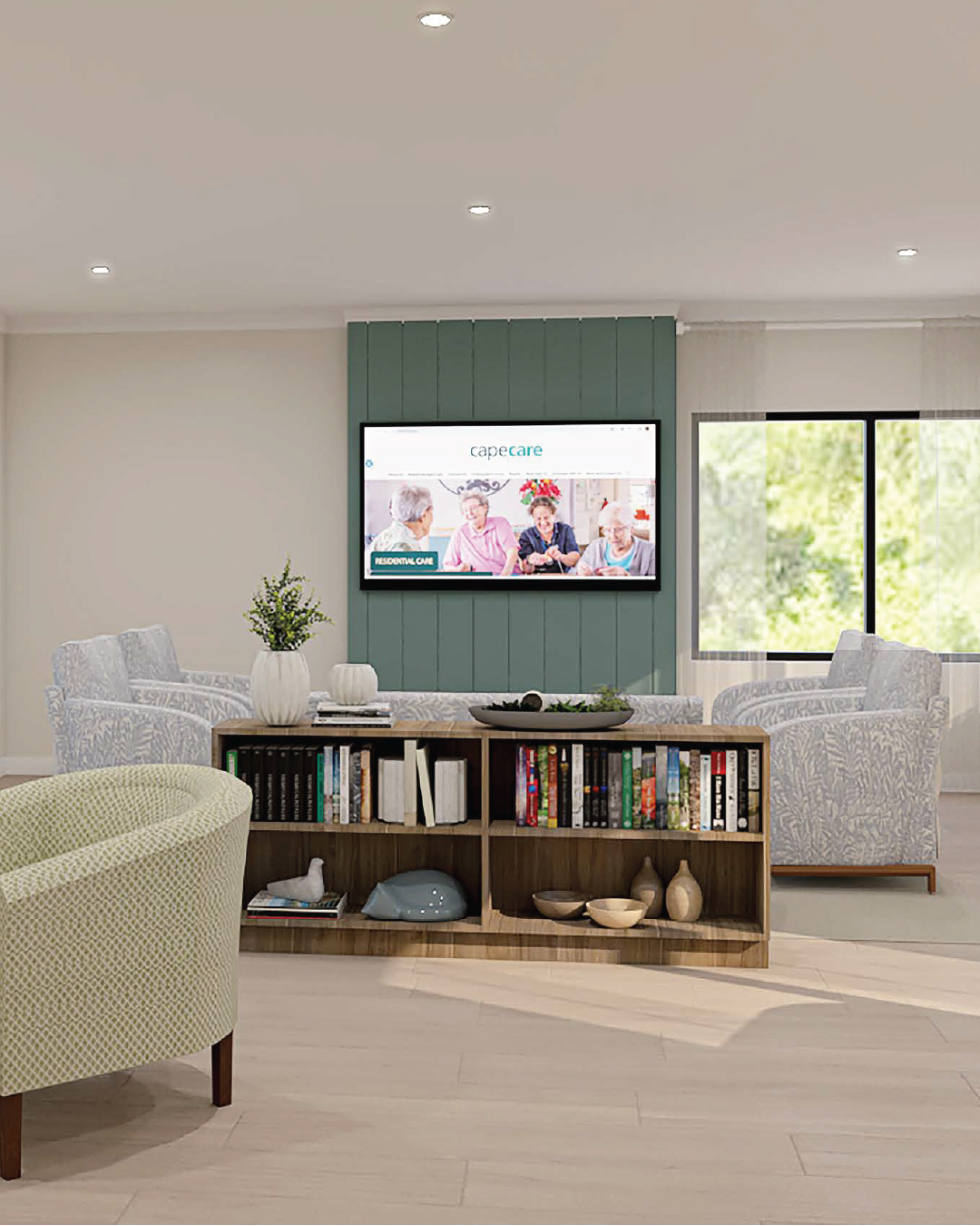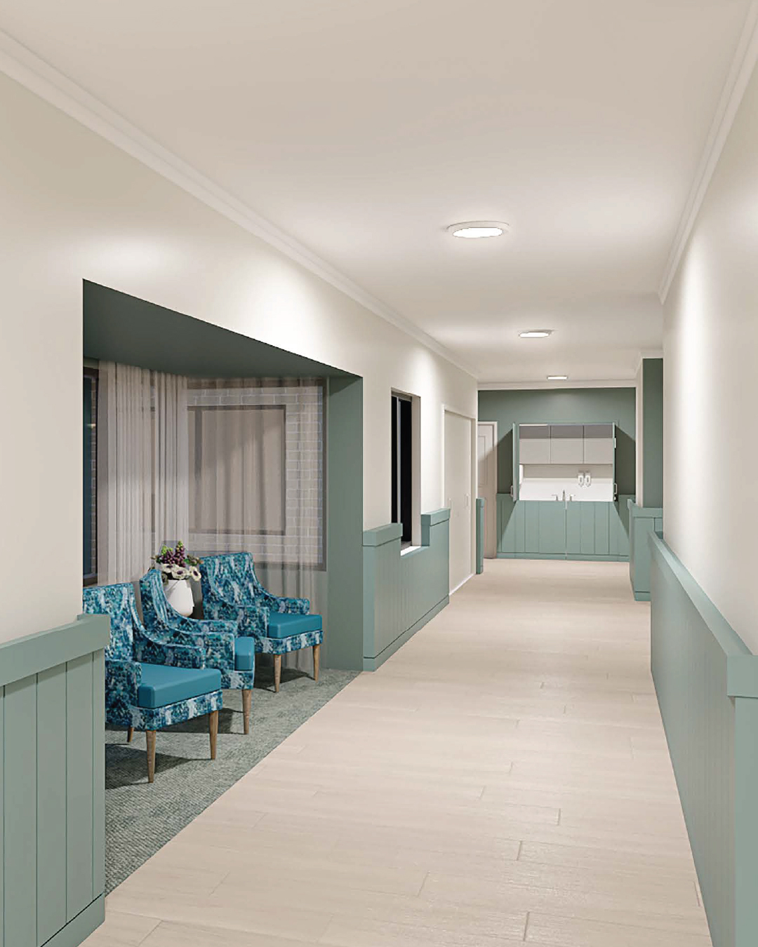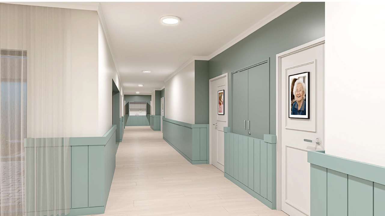 With the help of ACCAP funding, Capecare sought to upgrade their facility to better support residents with dementia, addressing issues such as disorienting wayfinding, non-compliant materials, and poor acoustics.