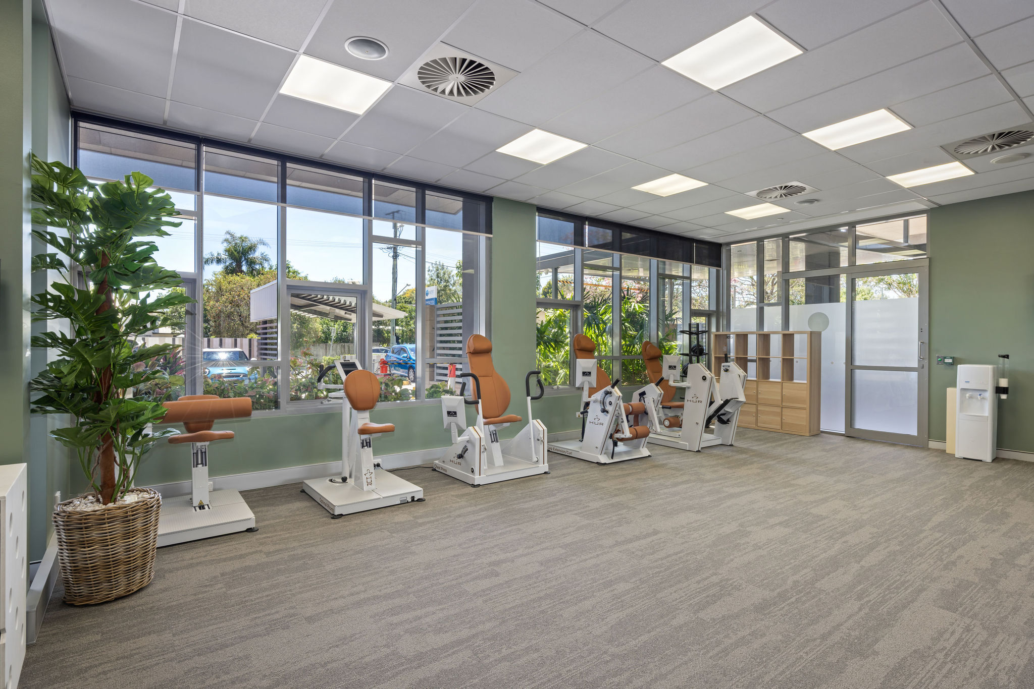 Inside Duhig Village, allied health rooms were redesigned for adaptability, supporting rehabilitation equipment and the changing needs of residents and healthcare professionals. The new gymnasium offers a spacious, light-filled environment equipped with specialised machines for gentle strength training and rehabilitation, helping residents maintain mobility, independence, and overall health.