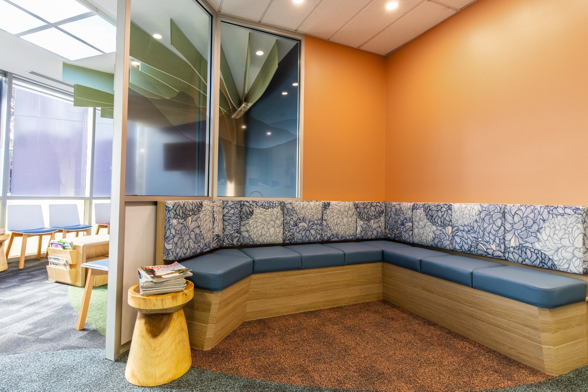 A children’s corner housing a custom-designed tree was used to appeal to young visitors and absorb the noise of their play. The durable, hard-wearing finishes facilitate the energy of children whilst still being sophisticated enough for their adult carers and other senior patients.