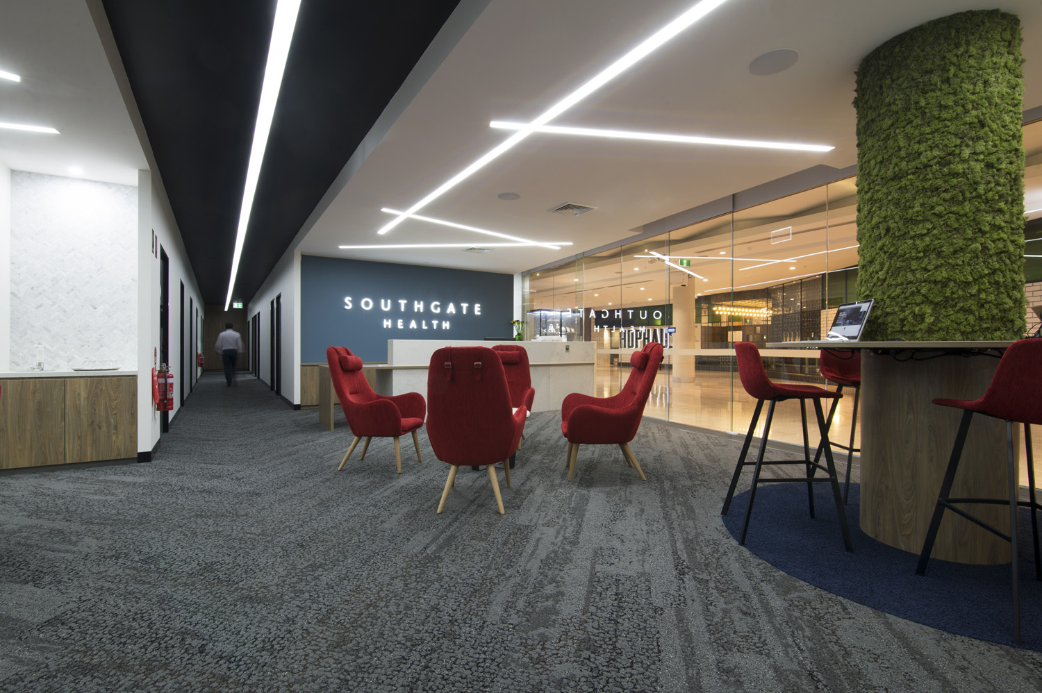 Southgate Medical Centre presented Interite Healthcare Interiors with a brief outlining the importance of maintaining strong visual references to the centre’s brand and culture, and the embodiment of a “lounge” atmosphere, whilst diverting away from the traditional clinical stigmas associated with medical environments.