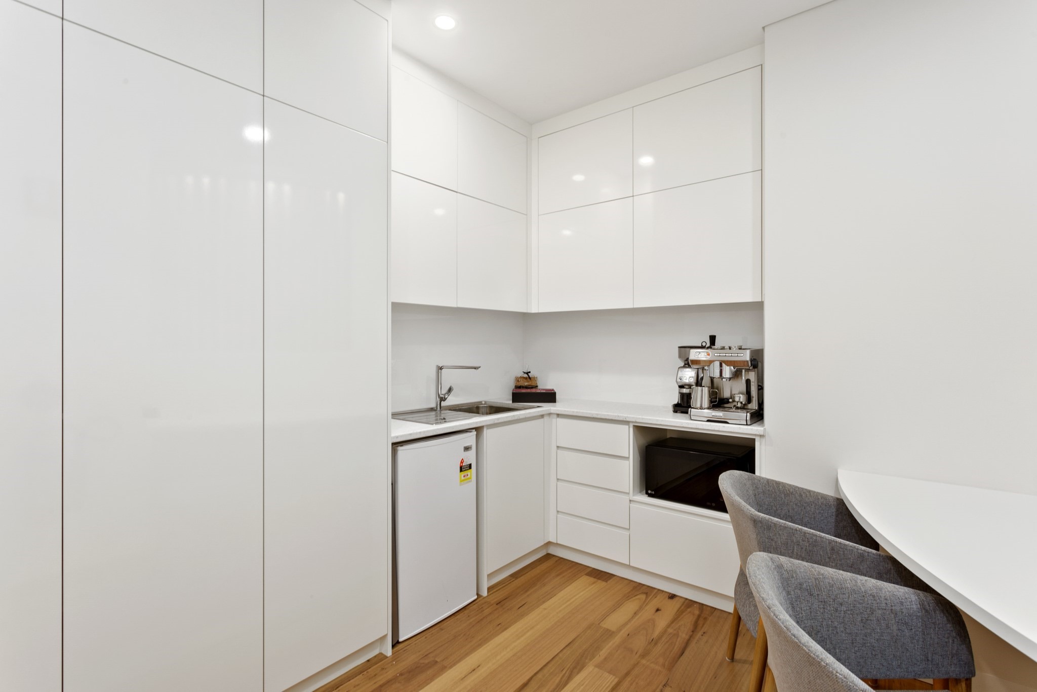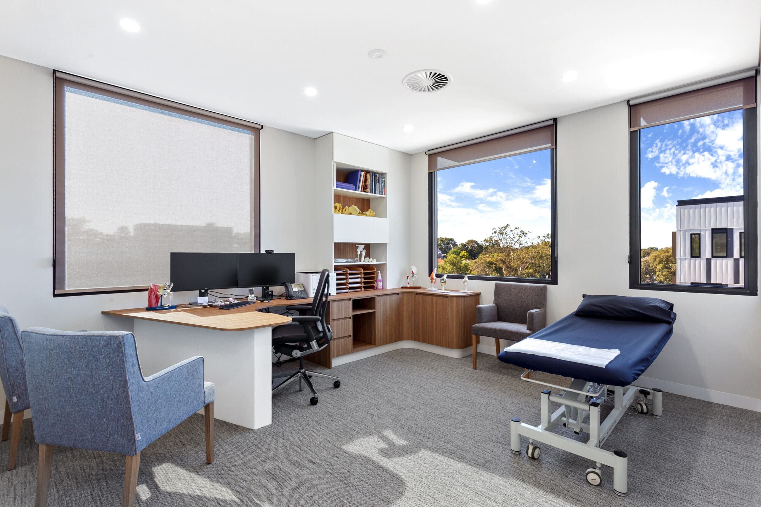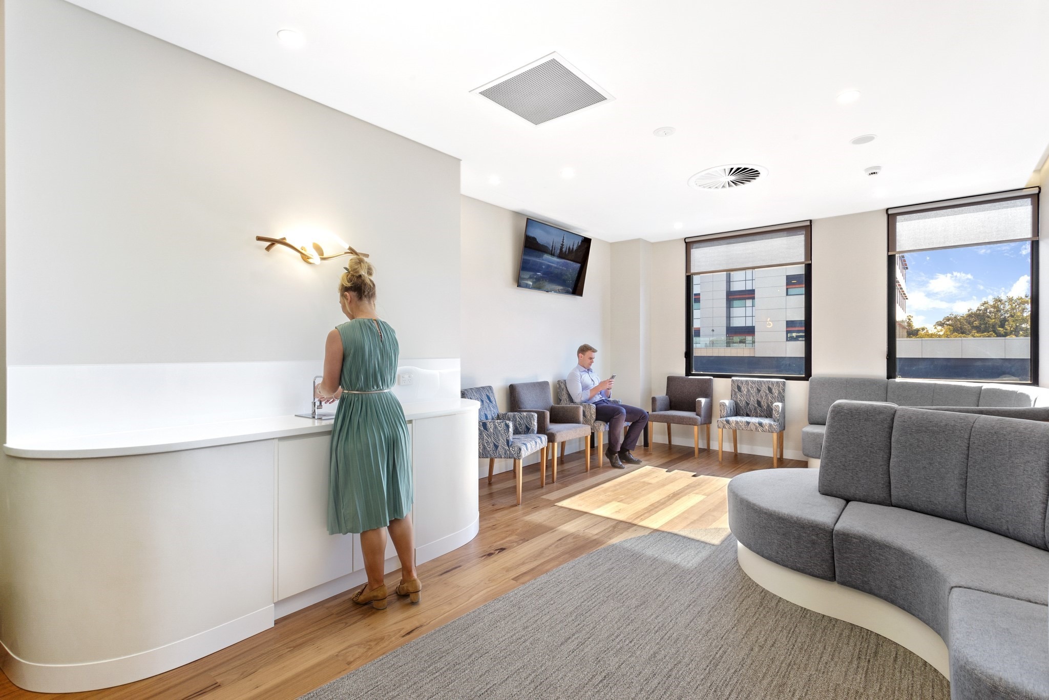 The curved reception desk, coupled with flooring that assists in wayfinding in soft greys and blues welcomes you to the clinic. Feel at home with self-serve tea and coffee area as you wait in comfort for your appointment, a feeling that can only be created with thoughtful, considered design.